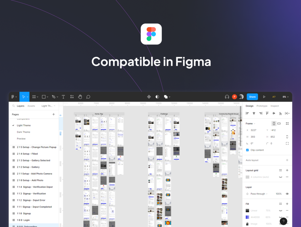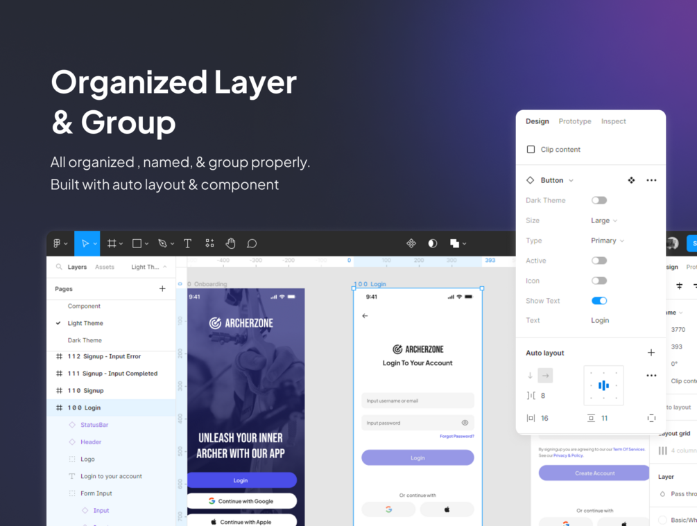 This high-quality Mobile UI Kit is well-prepared for iPhone resolution in iPhone X, Xs, 11 Pro, 13 mini size base, and fully customizable in other screen sizes. This kit comes with complete symbols and components that you can use for any purpose. All elements have been designed to speed up your design process.