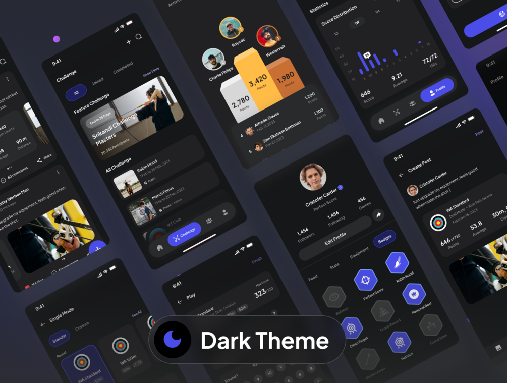 Archerzone is a premium high-quality UI Kit for archery sports apps. Containing 180+ well-designed screens, this UI Kit was designed very specially for archery sports activities, such as scoring and play mode.