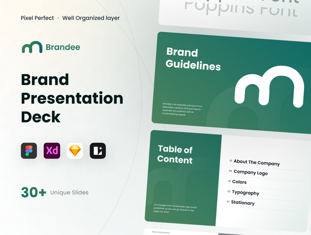 π¨ Style Guides in Various Design Tools: Brandee is compatible with Figma, XD, Sketch, and Lunacy, ensuring flexibility for your preferred design tool. The included style guides serve as a quick and easy reference for creating a visually striking presentation.