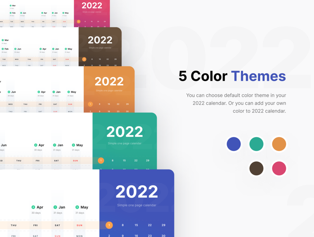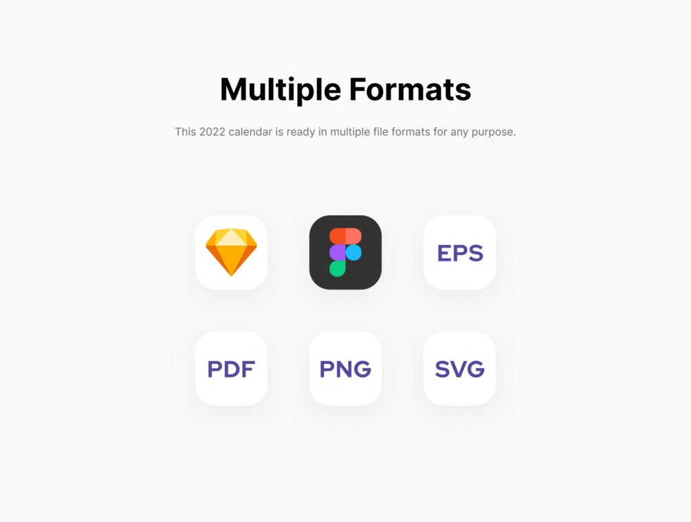 One Page Calendar 2022 for All in Figma, Sketch, SVG, PDF, PNG, and EPS format