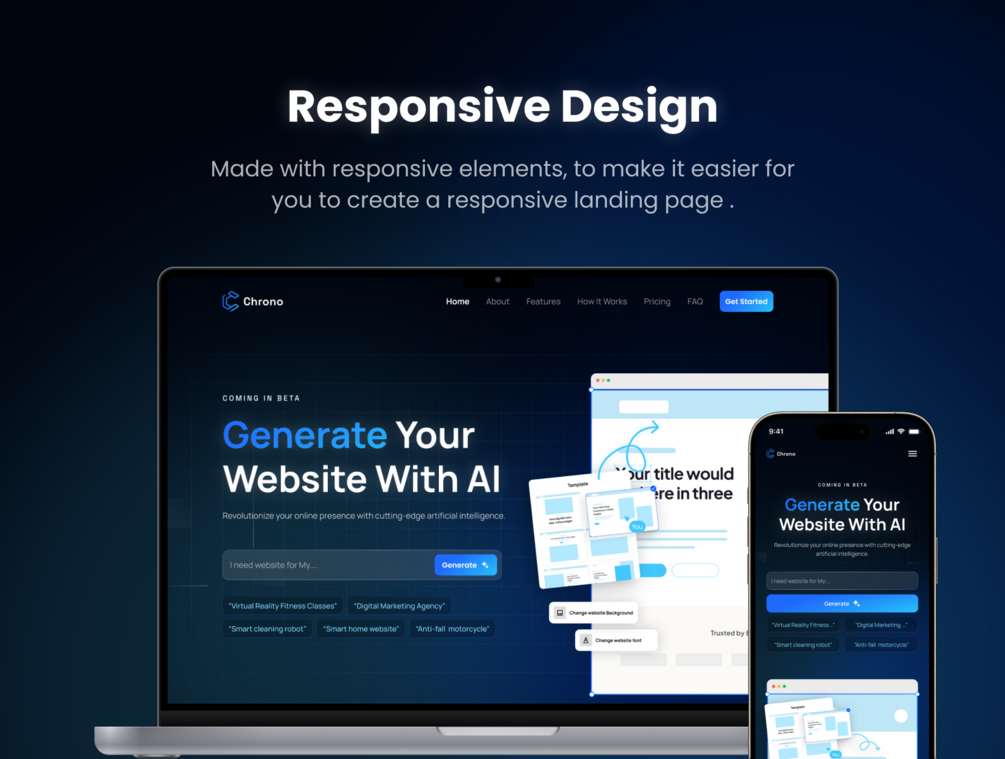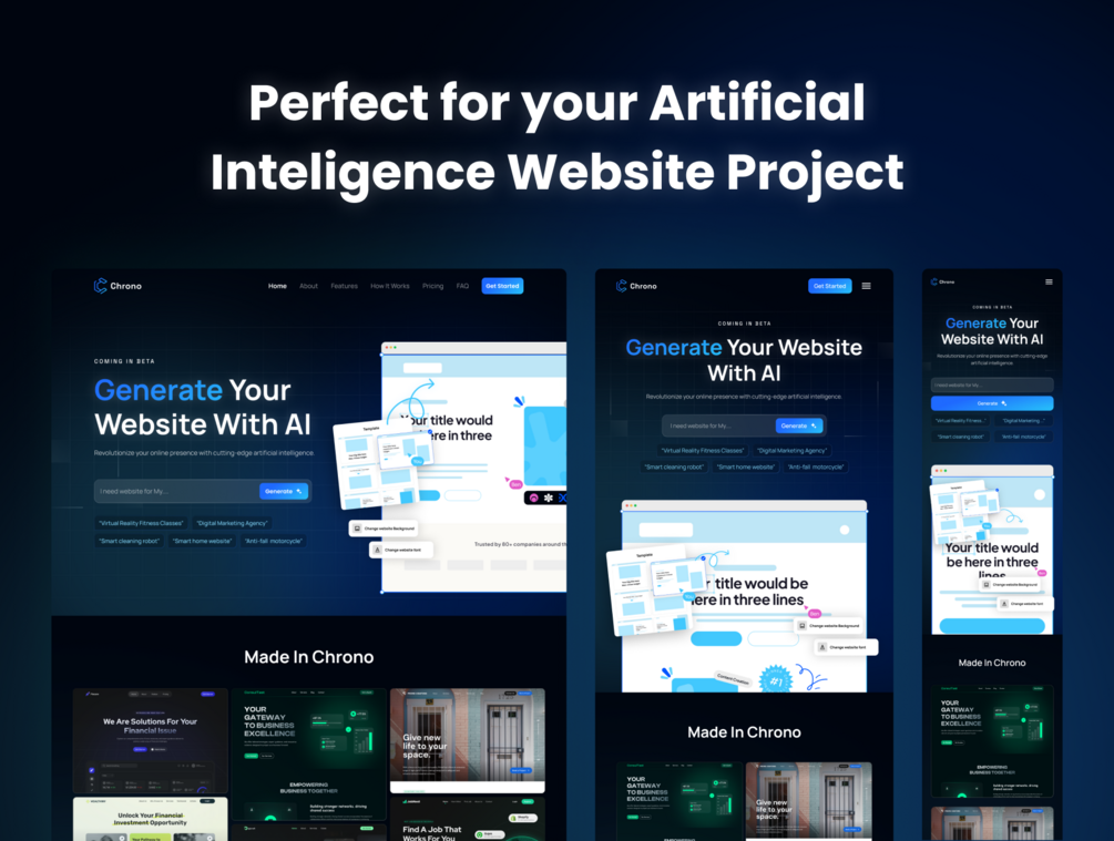 Available in both Pre-Designed Sections and Framer Templates, Chrono is tailored to meet the needs and established organizations operating website builders with AI service, as both digital technology companies and established organizations operate in the website development service. The template is 100% customizable & fully responsive to look beautiful on all devices.