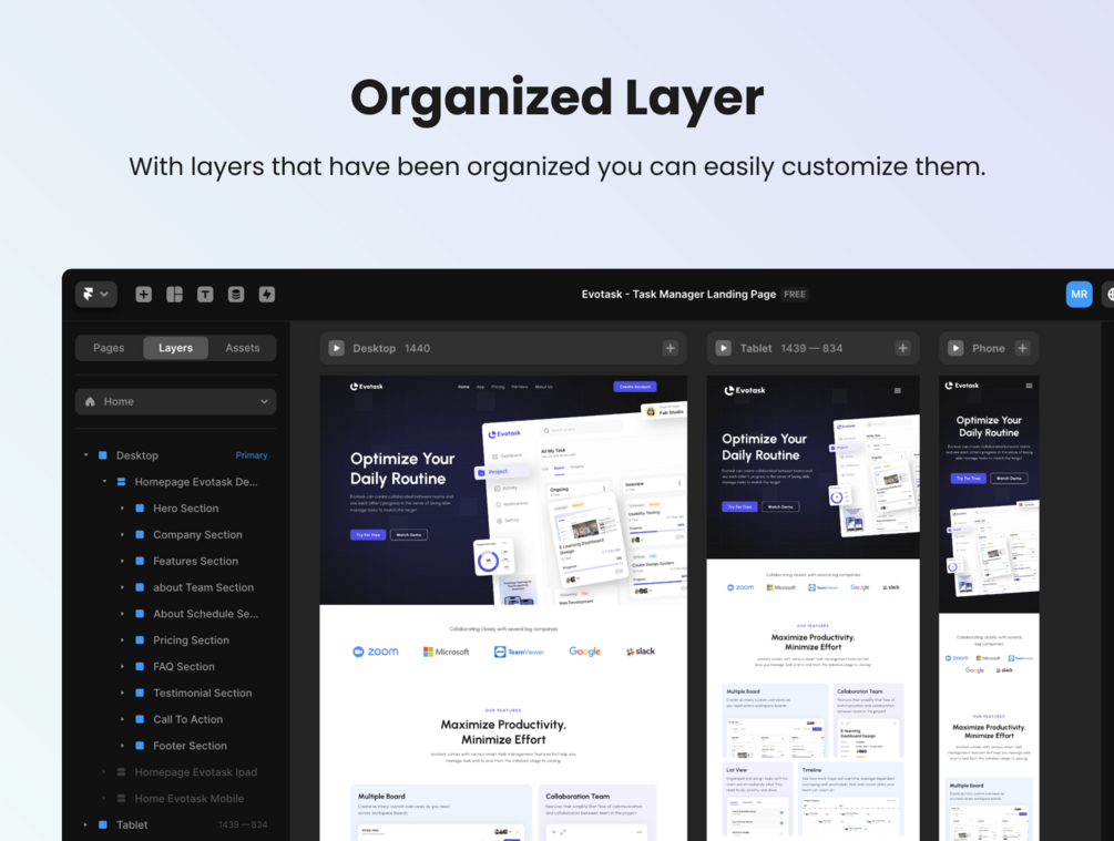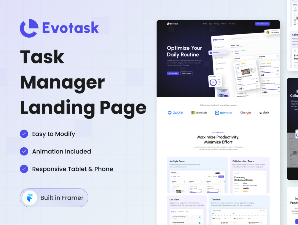 Evotask is packed with all the latest Framer features, making customization a breeze.