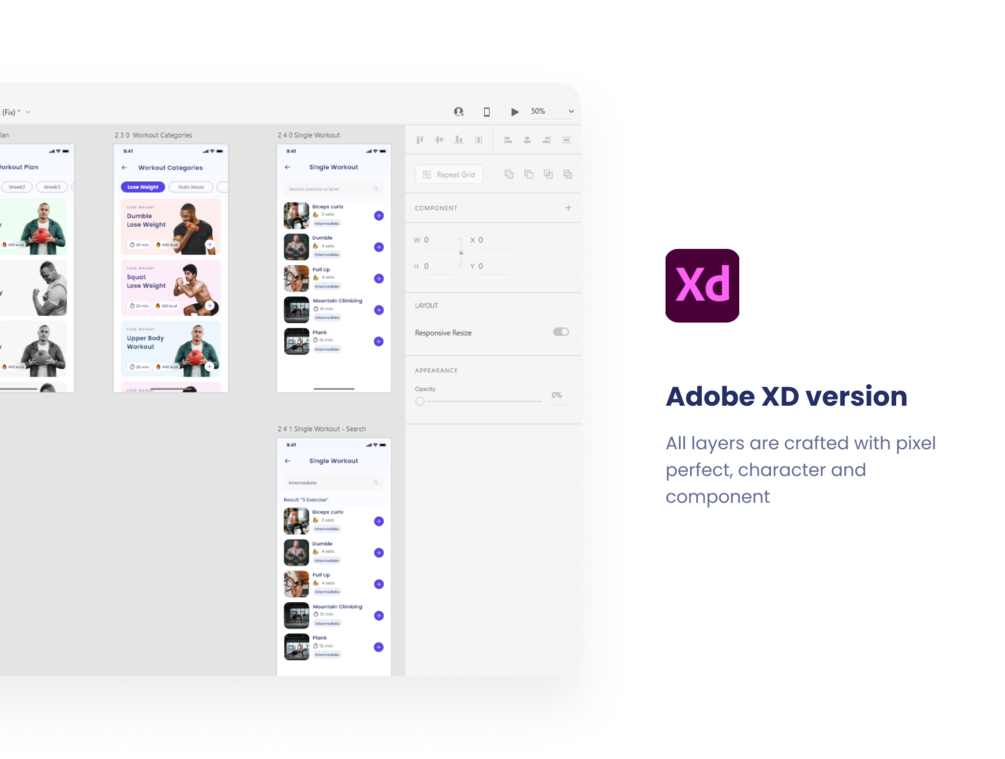FitFe is a premium high-quality UI Kit for Fitness sports apps containing 80+ well-designed screens. This UI Kit was designed very specially for fitness, exercise, and any sports activities.