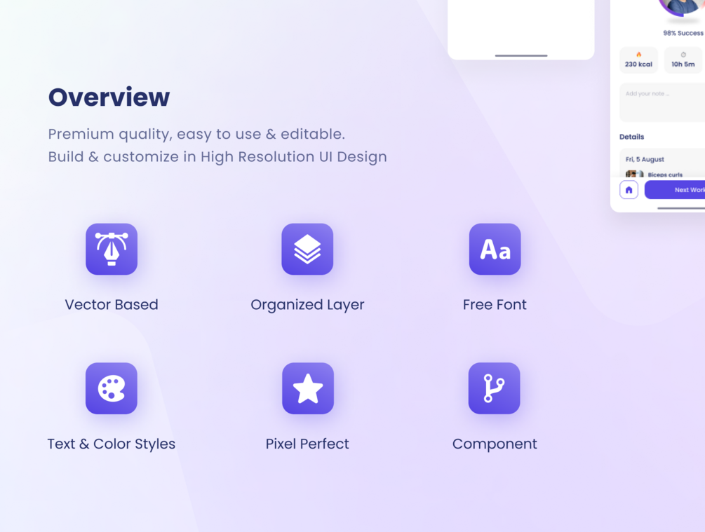Everything is well-prepared in this UI Kit including the UI Guidelines that you can use. No worry to customize all the elements and create a new screen, you can always see the guideline to make sure everything is consistent.