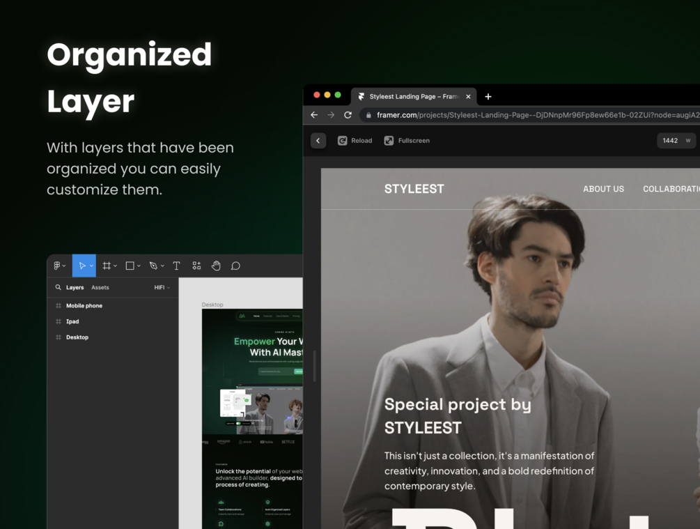 Packed with the latest Framer features, showcasing services, sharing testimonials, and engaging visitors with compelling articles stunning animation presentations, and easy live previews.