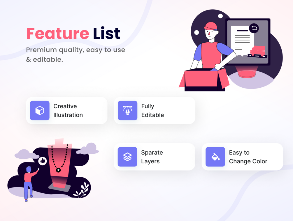 🖌 Well-Prepared and Consistent: No need to worry about customizing elements or creating new screens from scratch. Our illustration pack is meticulously designed, and guidelines ensure consistency across every element.