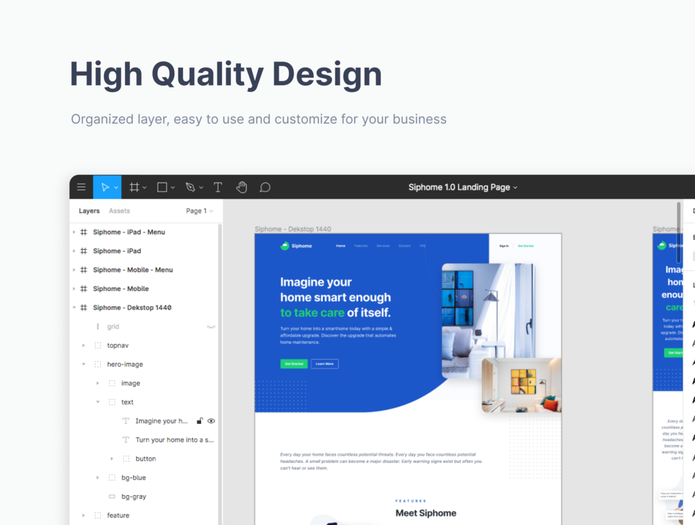 You will get a landing page template that is fully customizable with well-organized layers, a simple layout, with free Inter typeface. And of course the mobile responsive in tablet and smartphone size has provided.