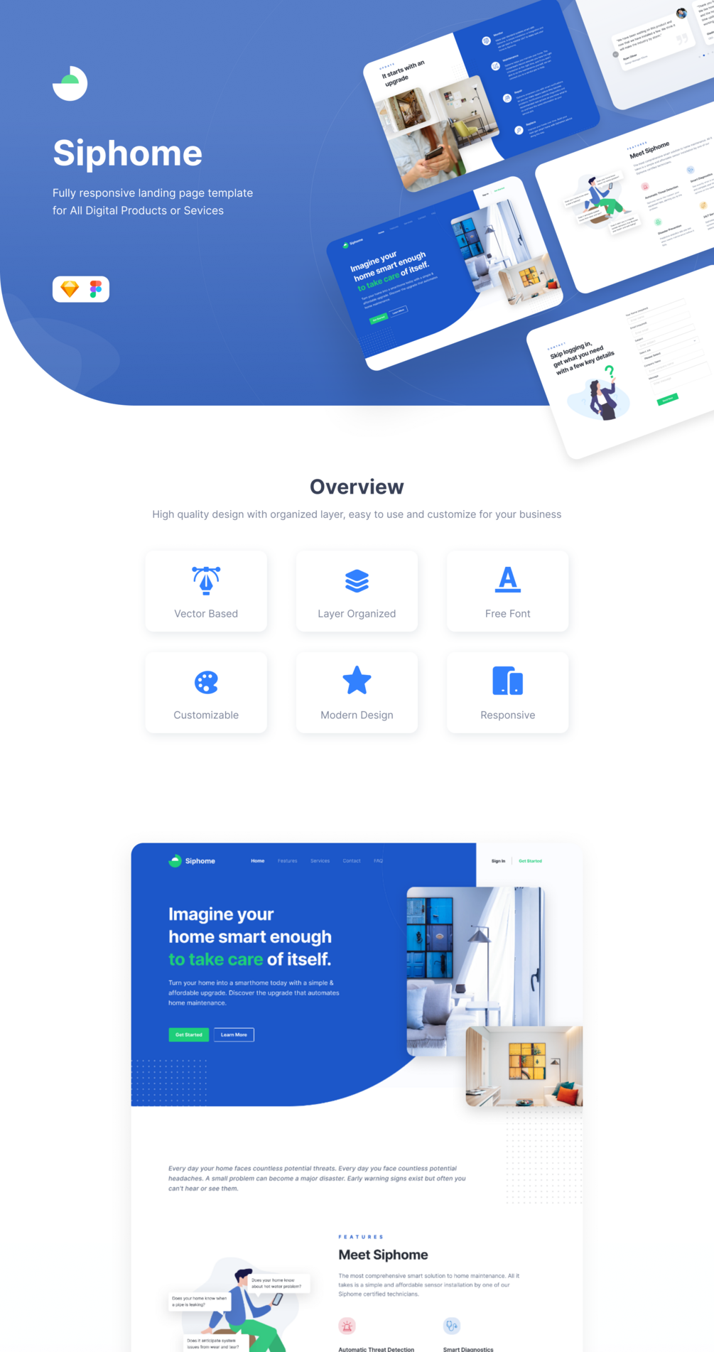 Siphome is a landing page template specially created for smart home products or startups. This design template is elegant, simple, clean, and minimal. Designed based on real case to enhance the user experience & make more conversions.