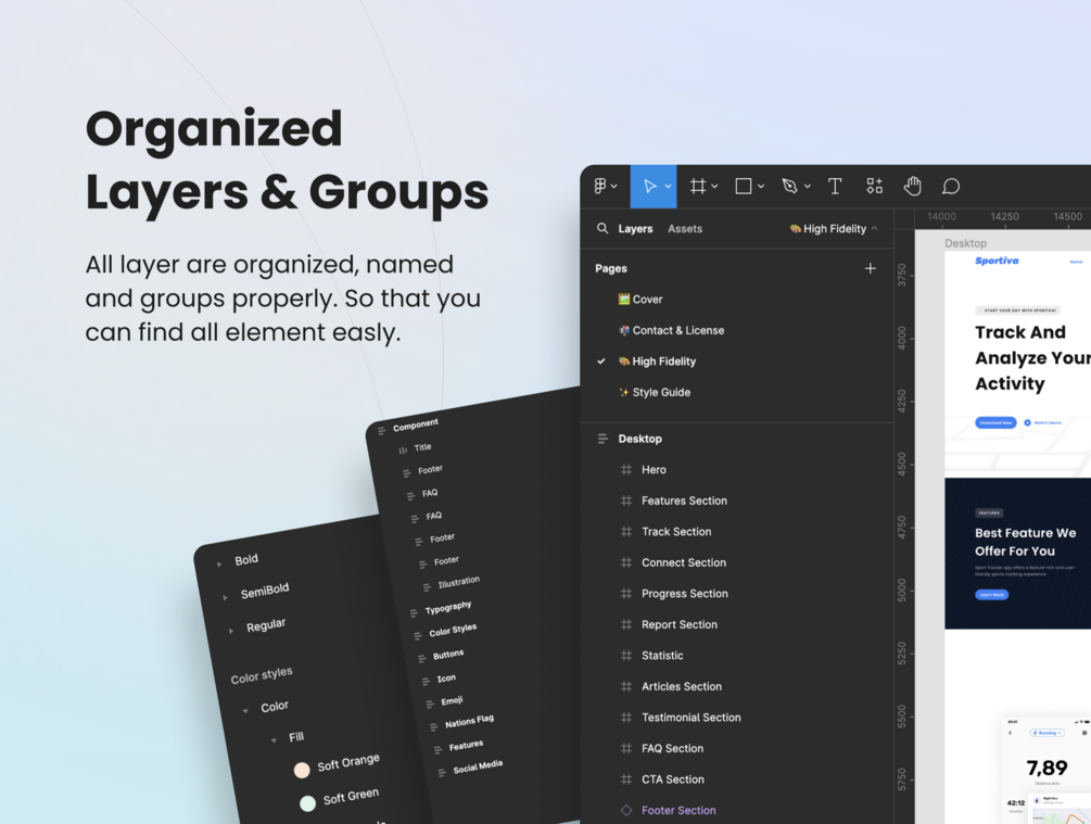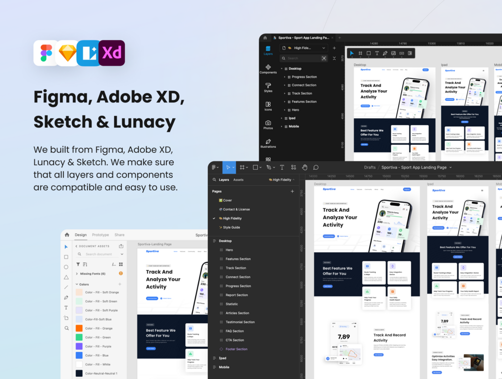 🧰 Well-organized and Ready to Use: Dive into hassle-free customization with symbols and components that are meticulously organized and ready to use. Whether using Figma, Sketch, Adobe XD, or Lunacy, Sportiva is versatile and user-friendly.