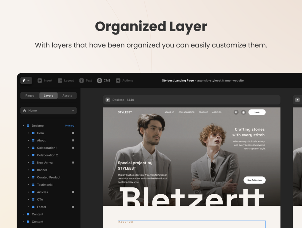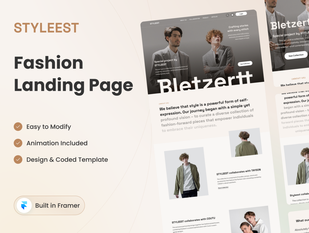 • Built with all the latest Framer featuresStyleest comes packed with all the latest Framer features, making customization a breeze.