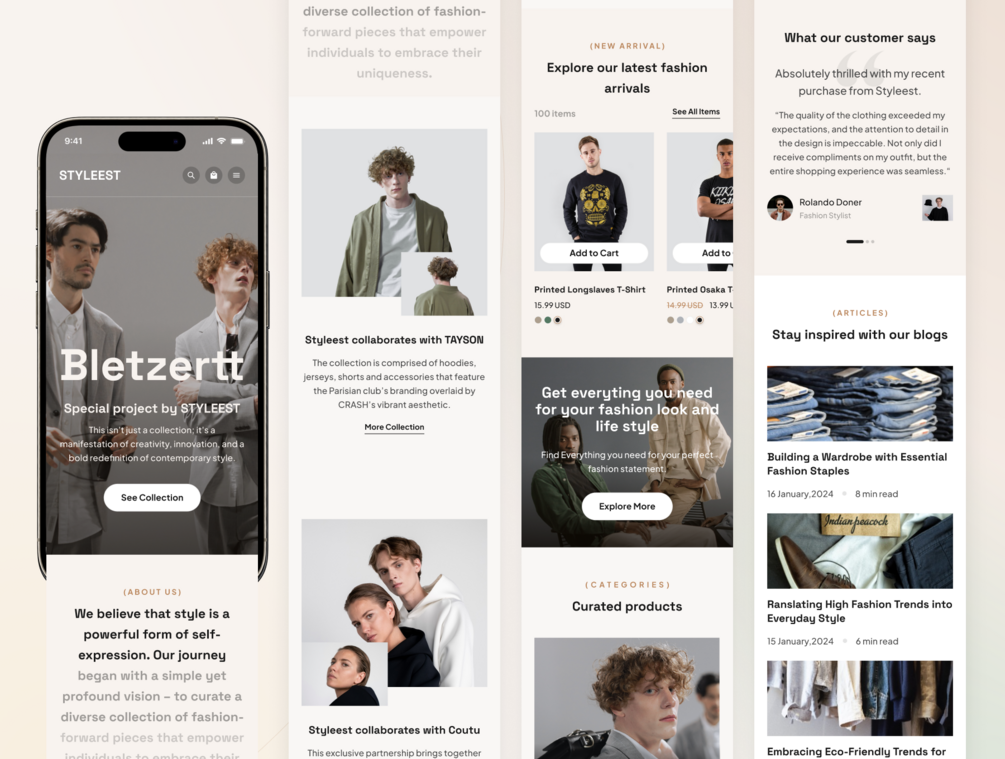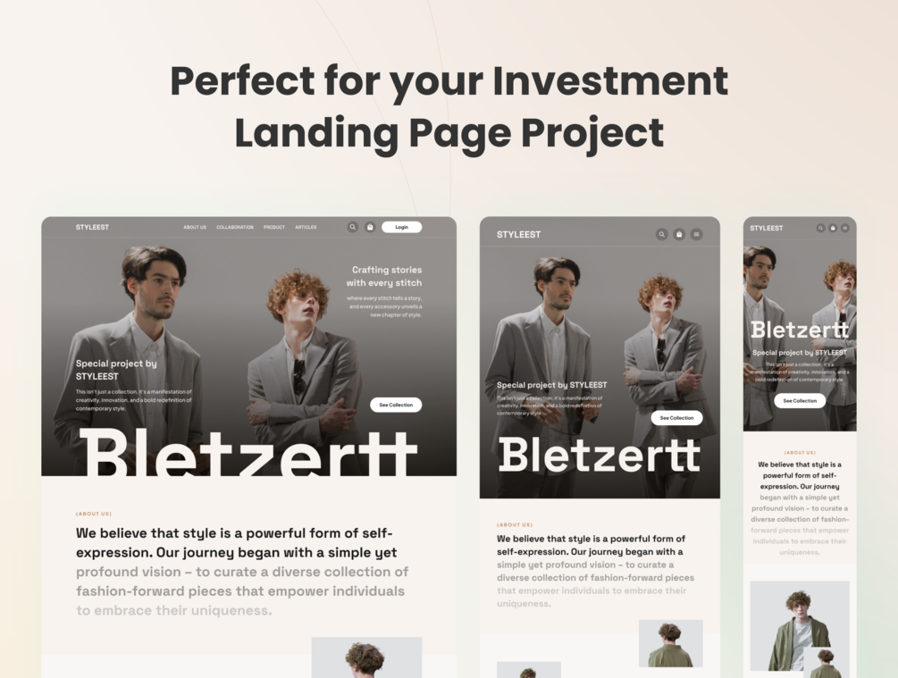 Styleest is a clean and neat Framer template tailored to meet the needs of fashion and apparel business, as well as both startups and established organizations operating in the fashion e-commerce. The template is made for Framer and is 100% customizable & fully responsive to look beautiful on all devices.