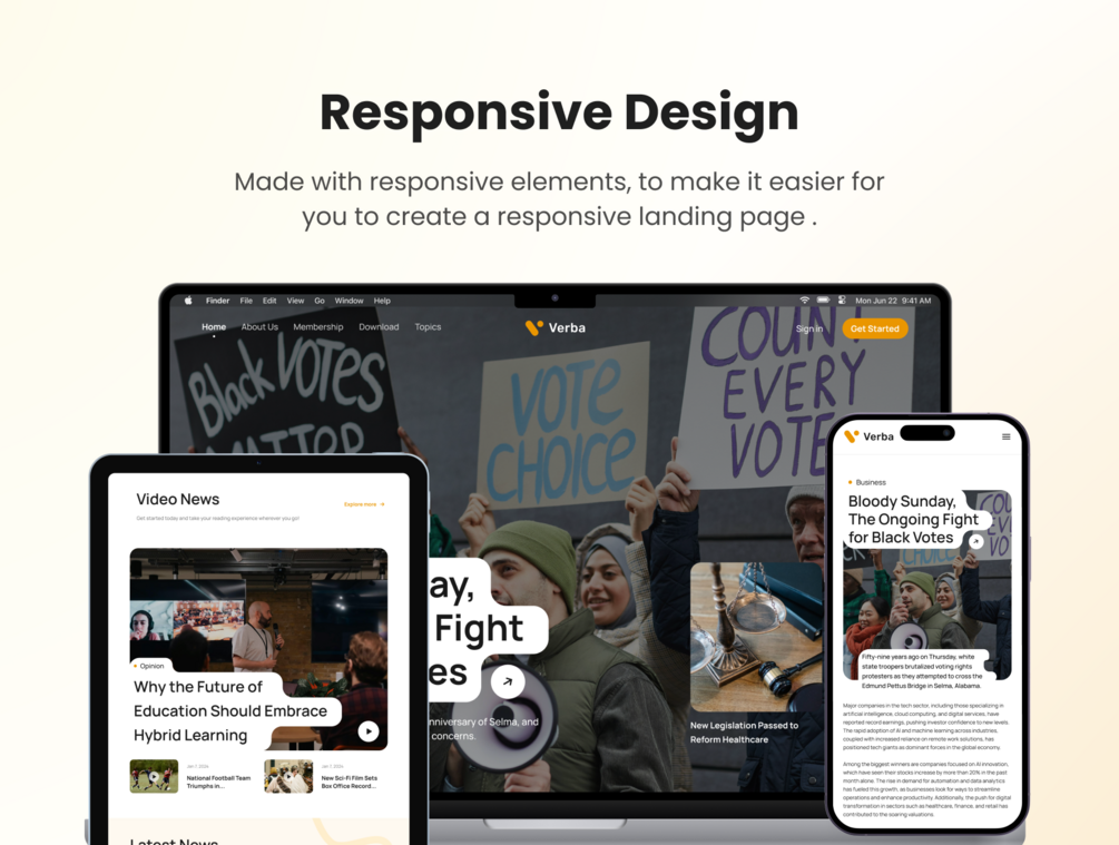 Explore the freedom of creating a website that seamlessly adapts to various devices. Verba includes responsive tablet and mobile versions for a holistic online experience.